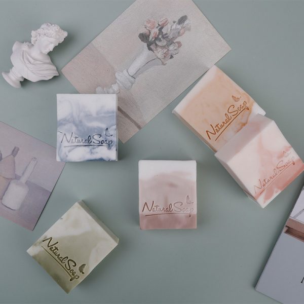 - handmade soap + plastic thin film + packaging box + middle box + carton box